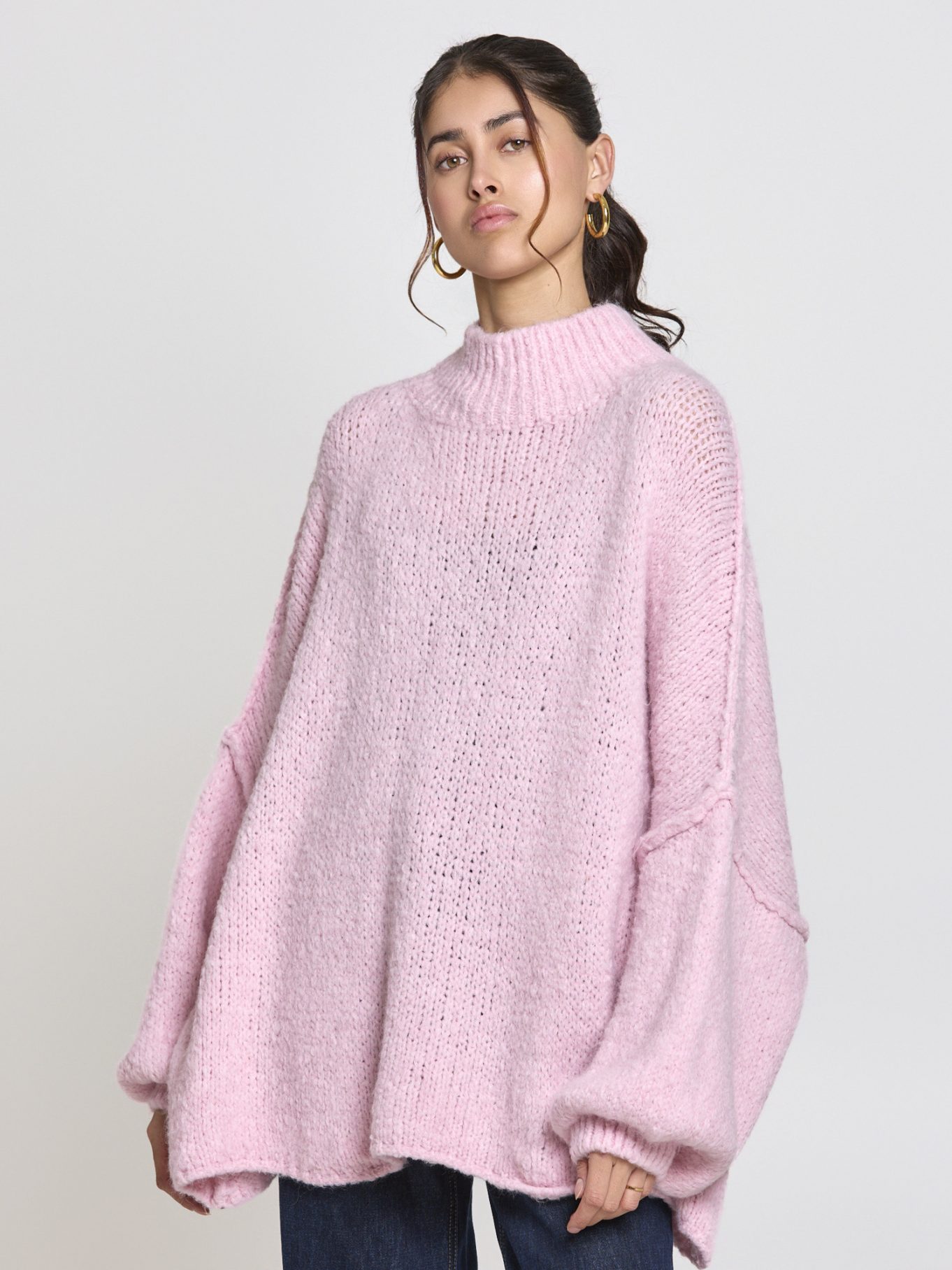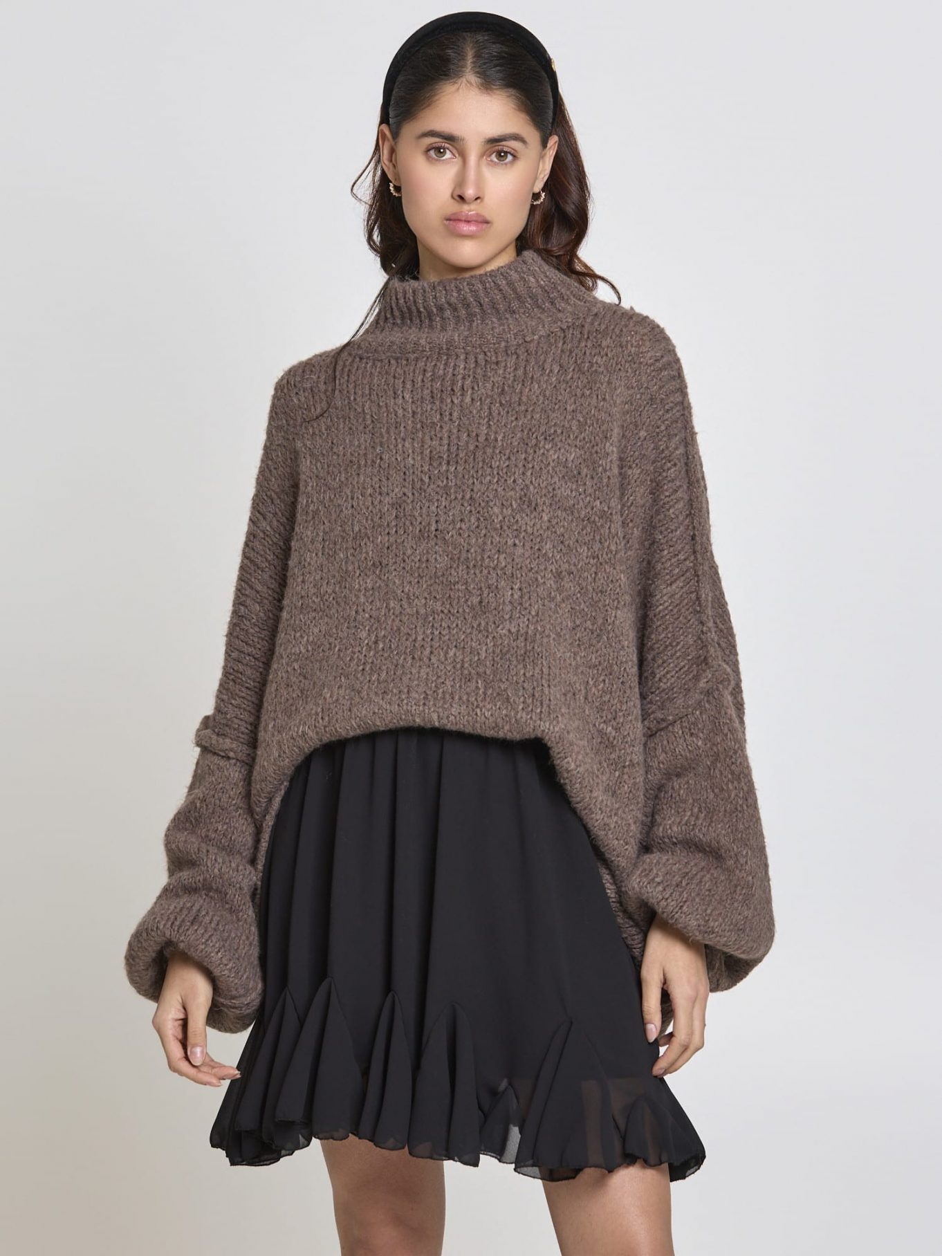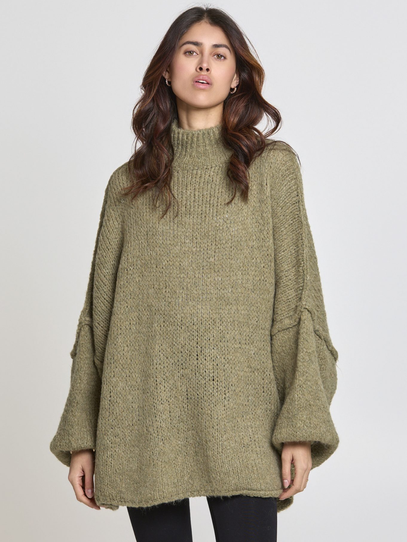 Der locker geschnittene Strickpullover Mara begeistert durch sein weiches, flauschiges Strickmuster. Die weiten Ärmel und der hohe Kragen schaffen einen kuscheligen Look, der sowohl lässig zu Jeans als auch feminin zu einem Rock kombiniert werden kann. Perfekt für kühlere Tage oder gemütliche Stunden zuhause.