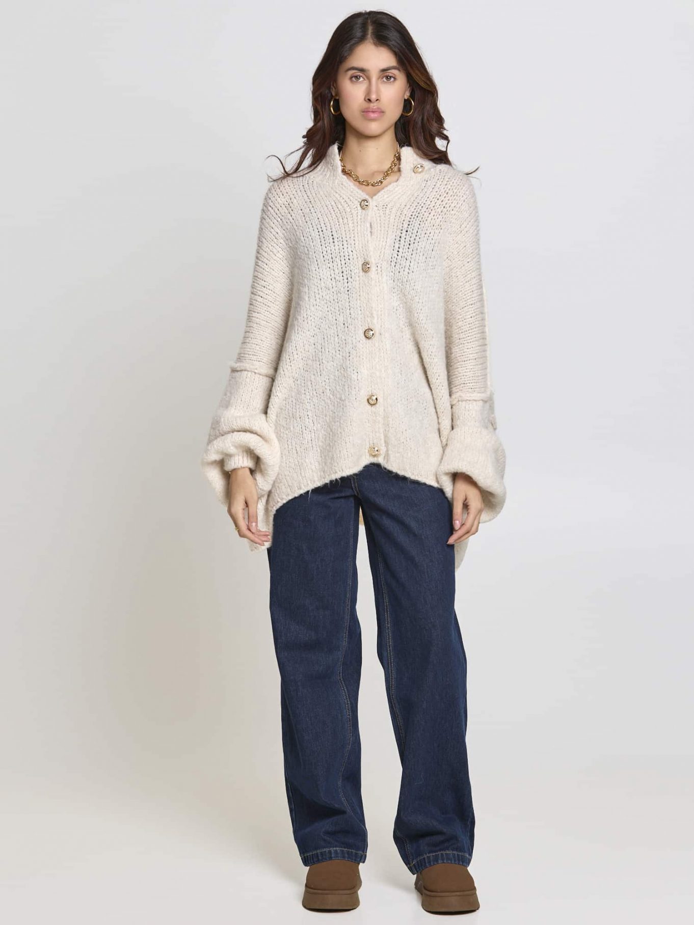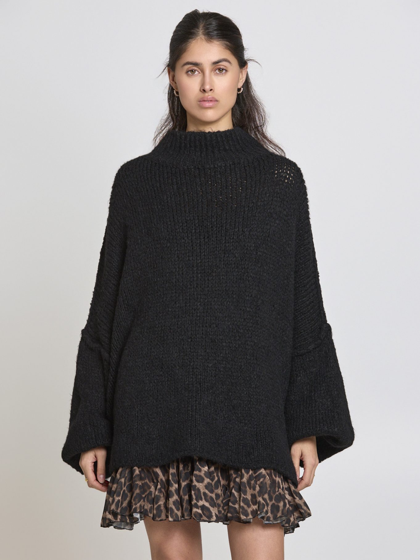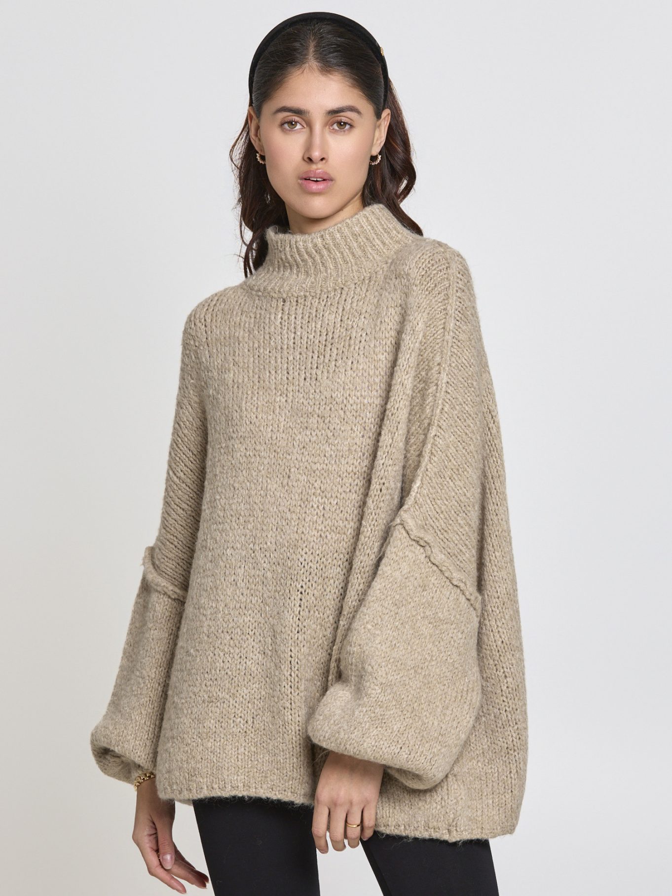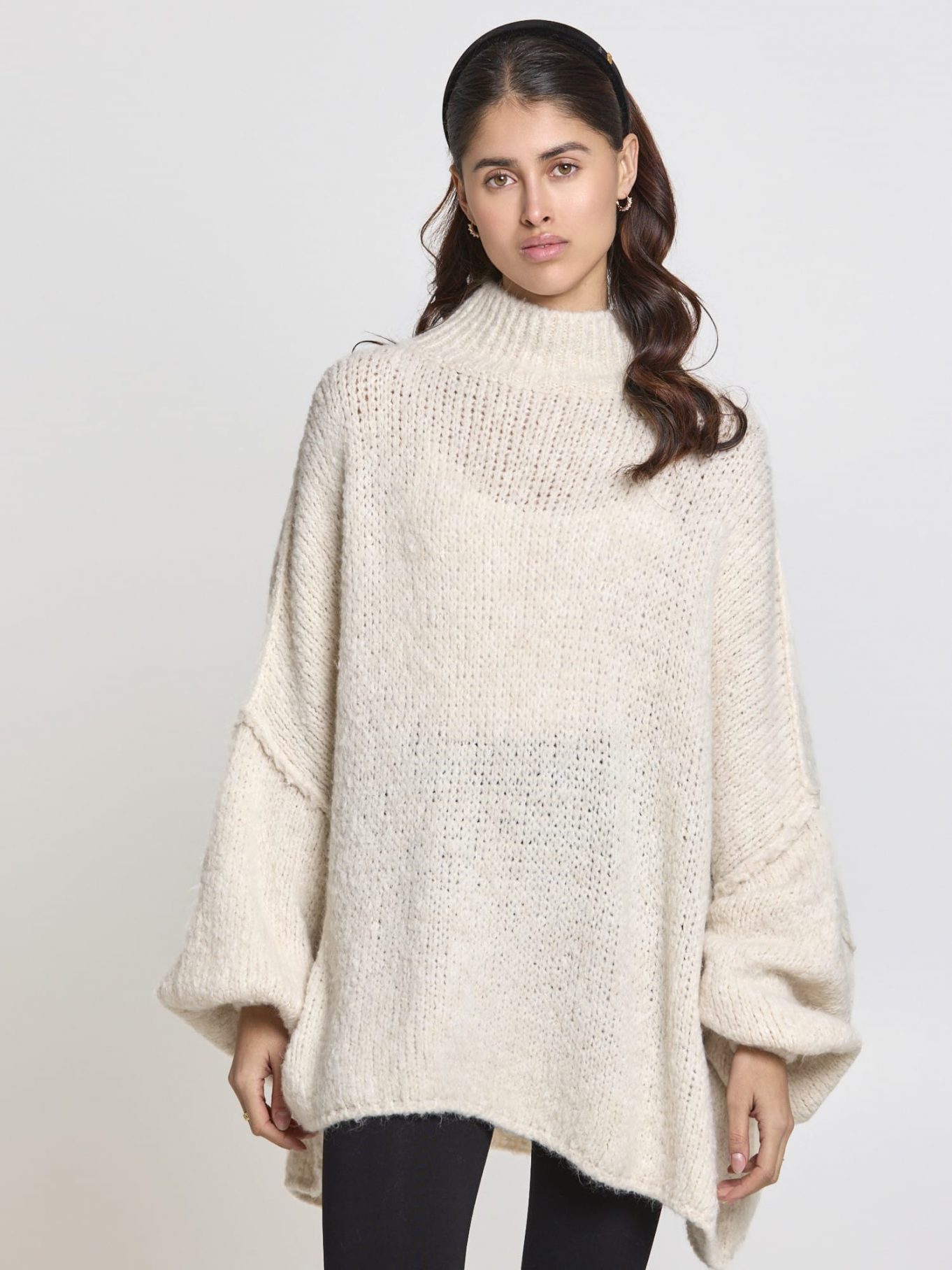 Der locker geschnittene Strickpullover Mara begeistert durch sein weiches, flauschiges Strickmuster. Die weiten Ärmel und der hohe Kragen schaffen einen kuscheligen Look, der sowohl lässig zu Jeans als auch feminin zu einem Rock kombiniert werden kann. Perfekt für kühlere Tage oder gemütliche Stunden zuhause.